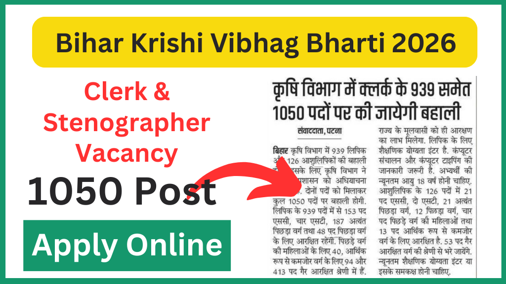 Bihar Krishi Vibhag Bharti 2026: 1050 Clerk & Stenographer Vacancy – Check Eligibility, Post Details