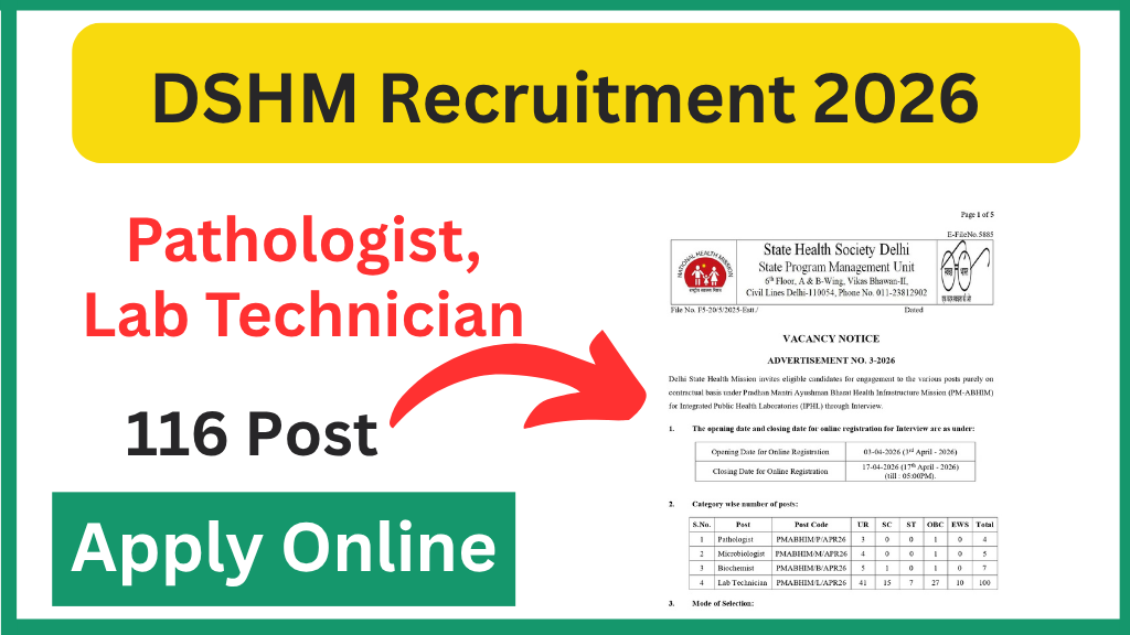 DSHM Recruitment 2026: Apply Online for 116 Pathologist, Lab Technician, and Other Posts
