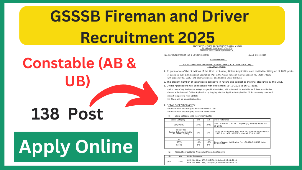GSSSB Fireman and Driver Recruitment 2025 – 138 पदों के लिए ऑनलाइन आवेदन शुरू