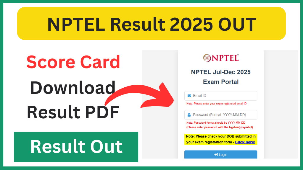 NPTEL Result 2025: National Programme on Technology Enhanced Learning (NPTEL) ने अक्टूबर–नवम्बर 2025 सेमेस्टर के लिए आयोजित विभिन्न कोर्सों का परिणाम आधिकारिक वेबसाइट nptel.ac.in पर जारी कर दिया है। NPTEL द्वारा संचालित इन कोर्सों में हजारों छात्र शामिल होते हैं और अब सभी छात्र नीचे दिए गए डायरेक्ट लिंक की मदद से अपना NPTEL Result 2025 PDF और स्कोरकार्ड डाउनलोड कर सकते हैं।