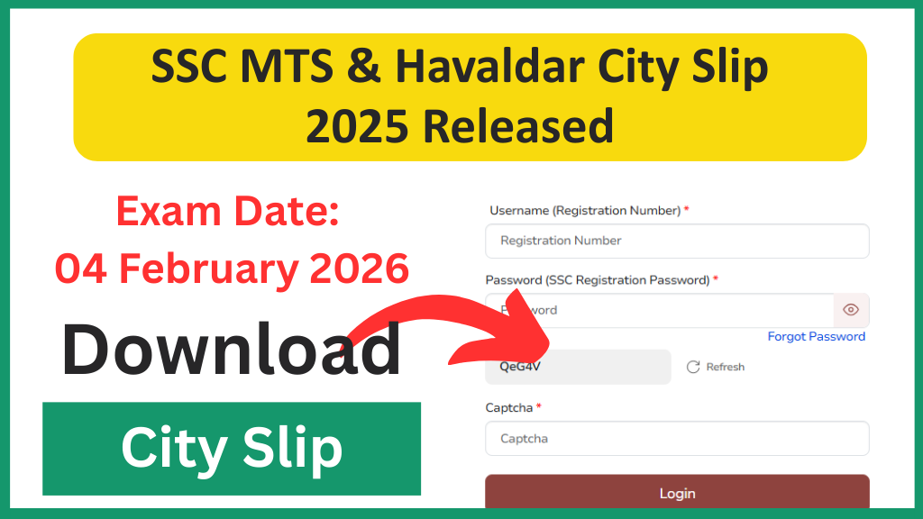 Good news for candidates preparing for the SSC MTS and Havaldar Exam 2025. The Staff Selection Commission (SSC) has officially released the City Intimation Slip for Multi-Tasking Staff (MTS) and Havaldar (CBIC/CBN) posts.